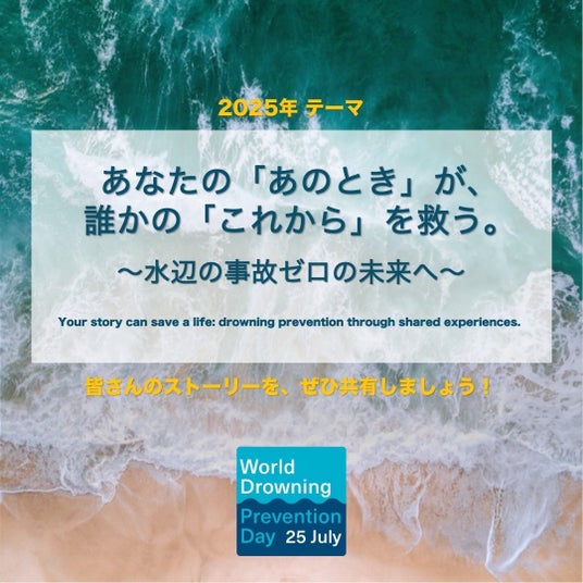 2021年に国際連合が、7月25日をWorld Drowning Prevention Day 世界溺水防止デーと宣言しました。世界中でこの標語を掲げて溺水防止キャンペーンが実施され、日本でも溺水事故防止のために、具体的な行動を起こしています。