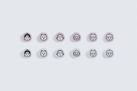 - サイズ:1人ずつ W42-55 mm x H33-44mm / 仲間たち W62 mm x H51mm