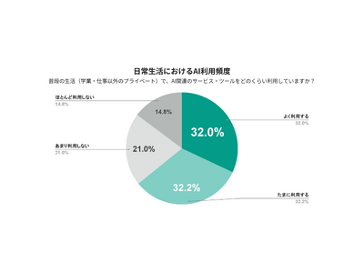 また、学業・事務用途に限らず、プライベート領域におけるAI利用の広がりも確認されました。日常生活で「よく利用する」「たまに利用する」と回答した学生が64.2%を占めており、