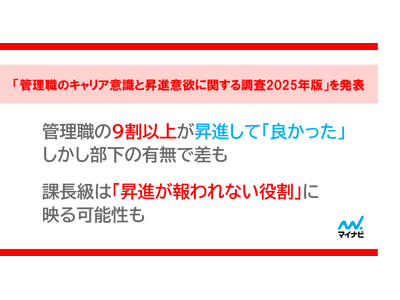 株式会社マイナビ(本社:東京都千代田区、代表取締役 社長執行役員:土屋芳明)は、正社員就業中の10~70代の男女(役員を除く)を対象に実施した、「管理職のキャリア意識と昇進意欲に関する調査2025年版」の結果を発表しました。