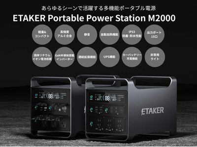 gf.Z株式会社(本社:東京都港区、代表取締役社長:長岡祐樹)は、2025年7月25日(金)午前8時より、ポータブル電源「ETAKER Portable Power Station M2000」のクラウドファンディングをCAMPFIREにて開始しました。
