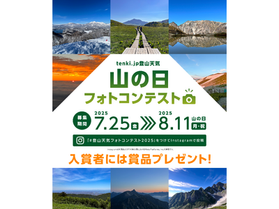 株式会社ALiNKインターネット(本社:東京都豊島区/代表取締役CEO 池田洋人/以下、当社)は、一般財団法人 日本気象協会(本社:東京都豊島区、理事長:渡邊 一洋)と共同で運営している登山者のための山の天気予報専門アプリ「tenki.jp 登山天気」において、「山 と空」をテーマにしたInstagramフォトコンテスト「tenki.jp 登山天気 山の日フォトコンテスト 2025」 を2025年7月25日(金)から8月11日(月)まで開催いたします。