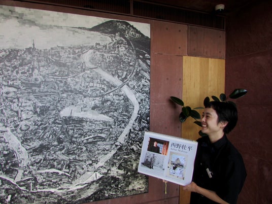 展示エリアは、ロビーや客室フロアだけでなく、レストラン、外廊下、さらには施設の各所にまで及び、まるで一棟そのものがひとつの美術館であるかのような空間を演出しています。ガイドを務めるスタッフは、それぞれの作品に込められた背景や作家の想いを丁寧にご紹介。作品の見方が変わるだけでなく、アートに対する理解や親しみがぐっと深まる体験になるはずです。