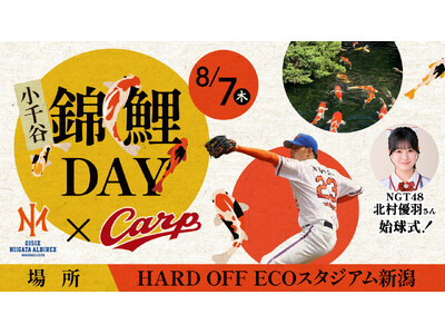 オイシックス新潟アルビレックス・ベースボール・クラブと広島東洋カープの交流戦にて「小千谷錦鯉DAY」が開催されます。プロ野球球場に錦鯉が展示されるのは初めての試みです。