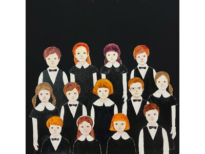幕が上がる直前の一瞬を切り取った作品には、整列した子どもたちの“歌い始める直前” の様子が描かれています。緊張で顔がこわばる子、堂々とした子、好奇心に満ちた目の子―。微細な表情の違いが、見る者の想像力をかき立てます。