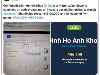 VCSの高度研究チーム所属の専門家、ディン・ホー・アイン・コアが、認証バイパスおよび安全でない逆シリアル化の脆弱性を組み合わせたエクスプロイトチェーンを発見・成功裏に実証しました。これによりMicrosoft SharePointへの不正アクセスを実現し、10万ドルの賞金を獲得しました。この脆弱性はその後、CVE-2025-49704およびCVE-2025-49706として識別されました。