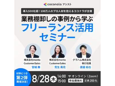 株式会社ココナラ(本社:東京都渋谷区、代表取締役社長CEO:鈴木 歩、以下「当社」)は、企業における労働力不足を解消するため、フリーランス活用の理解促進を目的として「業務の棚卸しの事例から学ぶフリーランス活用セミナー」を2025年8月28日(木)に開催します。