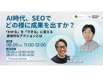 SEOの専門知識を持つニュートラルワークスとオロパス、両社の見解を基に、実践的な事例とともに、「AI経由での問い合わせ」や「検索ユーザーの減少に対する対策」など、SEO施策の具体的なアプローチを掘り下げます。