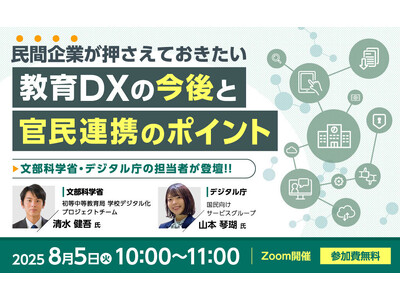 本セミナーでは、文部科学省およびデジタル庁のご担当者をお招きし、GIGAスクール構想第2期の現状と課題や、教育DXの今後の展望、官民連携を支える取り組みについてご紹介いただきます。