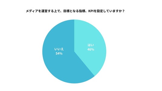 「メディアを運営する上で、目標となる指標、KPIを設定していますか?」という問いに対して「はい」と答えたのは約4割で多くのメディアが明確な指標を設けていないという問題が浮き彫りになりました。KPIの設定はPVやCVが指標とされることが多く、メディア運営の目的によって適切に設定することが望ましいとされています。