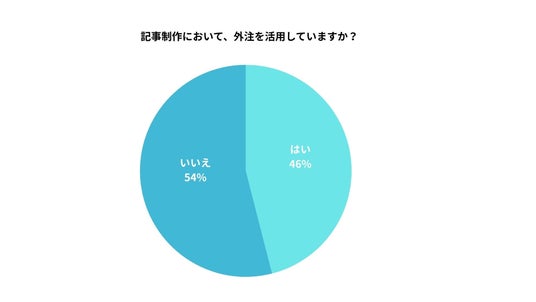 「記事制作の過程において、外注をしていますか?」という問いに対して、46%の回答者が「はい」と回答し、多くのメディアで外部リソースを活用しながら更新頻度を担保していることが分かりました。外部リソースの活用についての意見では量産体制の確保と生産性の向上がメリットとして多くある一方で、クオリティ担保の部分では発注元のスキルに依存していることが多く、如何に質の高いライターとのマッチングできるかが満足度を左右していることが分かります。