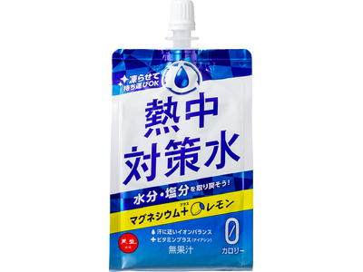 暑い中、開会式に参加している選手に、汗としてカラダの外にでた水分と塩分を取り戻す飲料「熱中対策水 パウチ レモン 300g」を提供させていただきます。当日は、汗を多量にかくことが予想されますので、熱中対策水で失った水分と塩分を美味しく取り戻してください。