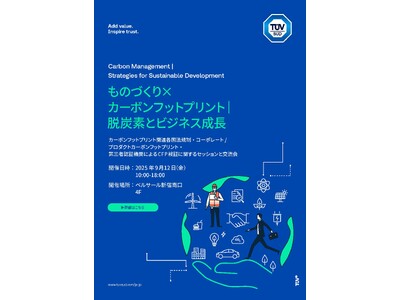 テュフズードジャパン株式会社(本社:東京都渋谷区、代表取締役社長:アンドレア・コシャ)は、2025年9月12日(金)、ベルサール新宿南口にて無料イベント「ものづくり×カーボンフットプリント|脱炭素とビジネス成長」を開催いたします。本セミナーでは、欧州・米国・中国・日本におけるカーボンフットプリントに関する最新政策や規制動向、ならびにカーボンフットプリントに対する企業の先進的な取組み事例について、国内外の専門家や企業が登壇し、解説を行います。