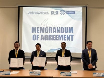 株式会社商船三井(社長:橋本 剛、本社:東京都港区、以下「当社」)はグループ会社である商船三井マリテックス株式会社(社長:菊地 和彦、本社:東京都港区、以下、「MOLMAT」)(註1)を通じて、フィリピンの海事教育機Maritime Academy of Asia and the Pacific/アジア太平洋海事アカデミー(学長: VADM Eduardo Santos, 以下、「MAAP」)(註2)および当社の長年の船員育成におけるパートナーであるMagsaysay GroupのMagsaysay Training Center(社長:Captain Alex M. Enriquez, 以下、「MTC」)(註3)と共に、ダイナミックポジショニング(自動船位保持装置。以下、「DP」)を有する訓練施設をフィリピンに開設します。本施設は、洋上風力発電や海洋開発に関わる特殊船の運航に必要なスキルを持つ船員・技術者の育成を目的としたもので、当社グループ内外の海技者・技術者に対して広くトレーニングを提供します。開設に先立ち、7月29日にバターン州マリヴェレスにあるMAAPのキャンパスにおいて、施設開設に関する合意書を締結しました。初回のトレーニングコースは9月1日に開講予定です。