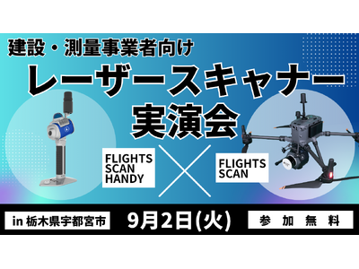 株式会社FLIGHTS(本社:東京都渋谷区、代表取締役:峠下 周平)は、地域の建設・測量業界をリードする株式会社ソッキテック(本社:群馬県前橋市、代表取締役:小柏 博)主催のもと、アイサンテクノロジー株式会社、株式会社コアミ計測器との4社共催で、最新レーザースキャナーの無料実演会を2025年9月2日(火)に栃木県宇都宮市で開催することをお知らせいたします。
