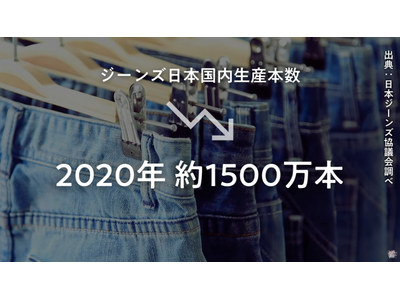 日本国内では、バブル期に年間8,000万本を誇ったジーンズ生産量が、安価な海外製品の台頭により、現在は約1,500 万本と約5分の1に減少しました。