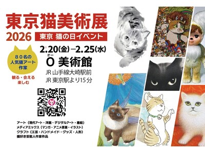 (情報1)香プロダクション合同会社(東京都中央区、代表 鋤柄よし子)は、猫アートで「東京猫美術展2026」を(2026年2月20日~25日)に「O美術館」(JR山手線大崎駅前・東京駅より山手線15分)で開催する。2月22日の『猫の日』の東京都内の代表的猫イベントのひとつとなる。人気作家・ベテラン作家・新進気鋭作家の猫作品が一堂に集まり、猫好きファンはもとより、アートコレクター・画商にとっても、見ごたえのあるアート展となる。現代アート・純粋絵画・水墨画・イラスト・マンガ・アニメ原画・工芸・ハンドメイドなどのジャンル。