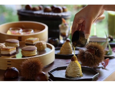 2023年より京丹波町と協働でお届けしてきた「京丹波栗アフタヌーンティー」。今年は、京丹波栗本来の美味しさを引き立てる「焼き栗」が初登場します。香ばしく焼き上げた栗に特製アイスクリームを添え、豊かなマリアージュをご堪能いただけます。そのほかにも、シェフ特製ソースで味わいの変化を楽しめる「京丹波栗のモンブラン」や、京丹波食材を使い、焼き立てをシェフがテーブルまでお届けする「京丹波焼き」、黒豆茶とカカオを合わせたモクテルなど、京丹波の秋の味覚を五感で味わうひとときをご提供いたします。