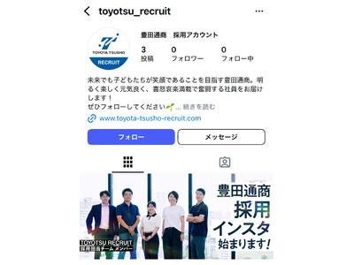 豊田通商株式会社(以下:豊田通商)は本日、豊田通商で働くことに興味・関心をもってくださる方々に向けて、豊田通商の魅力をより身近に知っていただくために、Instagramの採用アカウントを開設しました。