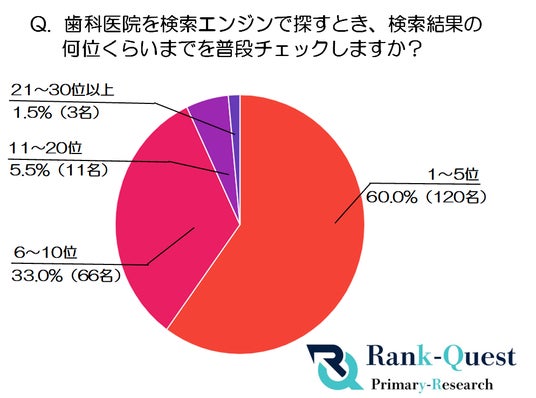 患者にとっては、検索結果の10位以内が医院選びの際の重要な基準となっていると考えられます。