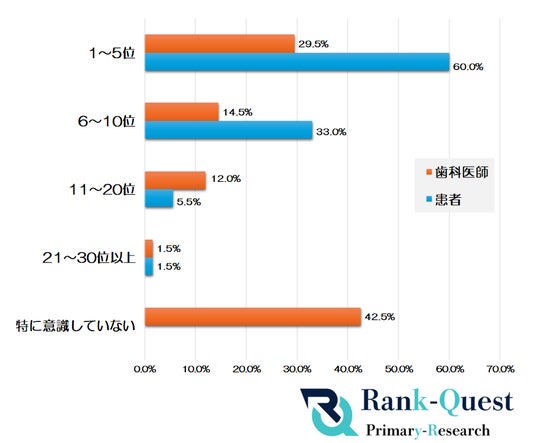 歯科医師側でこの順位を意識している割合は14.5%と半分以下にとどまっています。