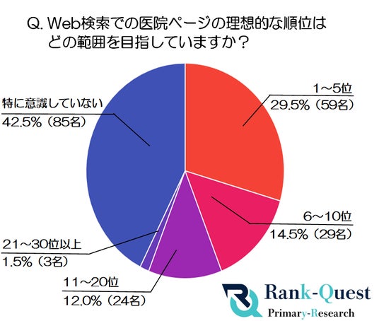 特に意識していない」(42.5%)という回答であり、検索順位を重要なものとして捉えていない歯科医師が多数を占めています。