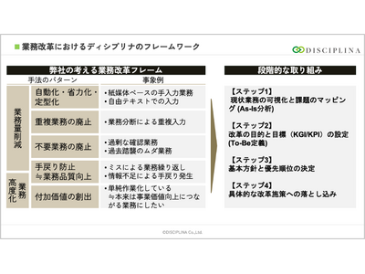 この中期経営計画の目標達成に向け、特にバックオフィス部門における業務効率化が重要課題となっており、ディシプリナは当該分野における豊富な実績と専門性を評価され、パートナー企業として選定されるに至りました。