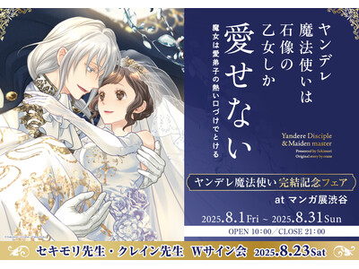 株式会社TORICO(本社:東京都千代田区、代表取締役社長:安藤拓郎)は、『「ヤンデレ魔法使い」完結記念フェア at マンガ展 渋谷』を2025年8月1日(金)から8月31日(日)まで同社が運営する東京・渋谷の「マンガ展 渋谷」にて開催いたします。