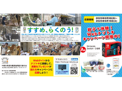 中国生乳販連(所在地:岡山市北区桑田町 代表理事会長:檜尾 康知)では、2025年8月3日(日)から9月16日(火)の期間で、「すすめ、らくのうキャンペーン」と題したWebナゾトキキャンペーンを開催中です。