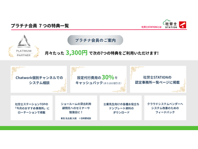 株式会社TECO Design(本社:東京都新宿区、代表取締役:杉野 愼)は、クラウドシステムに強い社会保険労務士の検索、相談ができるプラットフォーム「社労士STATION」において、2025年8月1日よりプラチナ会員特典をアップデートしたことをお知らせいたします。