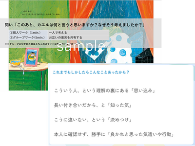 絵本という心理的安全性を確保しやすい題材を用いることで、安心して話しやすい雰囲気の中で参加者の主体的な関与を引き出します。