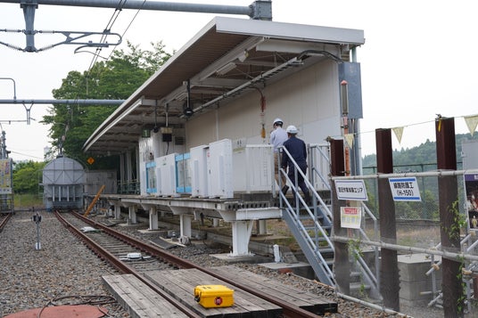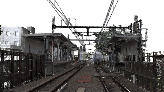 画像1)ホーム再現エリアにおけるスキャニング状況。ケースはスキャニングの始点、終点の目印になる。