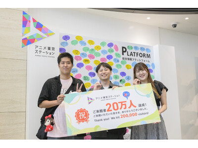20万人目のお客様は、福岡県と神奈川県からお越しの3人組で、「今日はアニメ東京ステーションの前を通りがかり、アニメが好きなので入ってみました。こんな施設があったんですね。20万人という記念のタイミングとのことでびっくりしました。」と驚きながらも喜びのコメントをいただきました。印象に残った展示については、「B1のアニメ制作資料保存とアニメ制作工程の展示を見て、『アニメは本当に人が関わって作っていたものなんだ』とびっくりしました、すごいです。」と感想を語ってくれました。