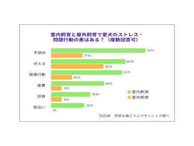 室内飼育の愛犬は屋外飼育に比べて 特定のストレスサインや問題行動を示す傾向に