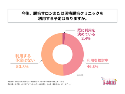 ムダ毛をセルフケアしている20代~40代の男性の約半数が今後、脱毛サロンまたは医療脱毛クリニックの利用意向がある