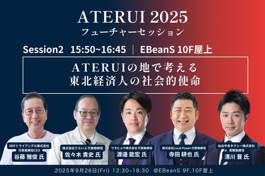 スパークル株式会社(本社:宮城県仙台市、代表取締役:福留秀基、以下「当社」)は、ATERUI2025実行委員会の一員として、「ATERUI2025」を2025年9月26日(金)に仙台市で開催いたします。