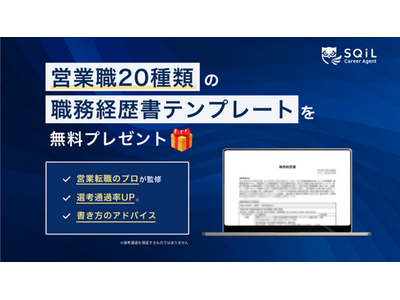 このたび、株式会社セレブリックス(本社:東京都江東区 代表取締役社長:北川 和毅)は、営業職に特化した転職支援サービスであるSQiL Career Agentより、営業職の職務経歴書テンプレート20種類を無料公開いたしました。