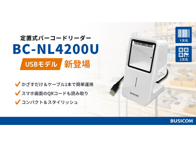 株式会社ビジコム(本社:東京都新宿区、代表取締役:中馬 浩)は、1次元および2次元コードに対応した定置式バーコードリーダー「BC-NL4200」シリーズの新ラインアップとして、USB接続専用モデル『BC-NL4200U』を発売いたしました。