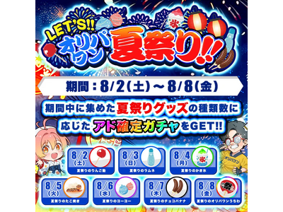 https://oripaone.jp)では、2025年8月2日(土)より、最大還元率180%のチャンスが手に入るスペシャルイベント「LET’Sオリパワン夏祭り」を開催しています。