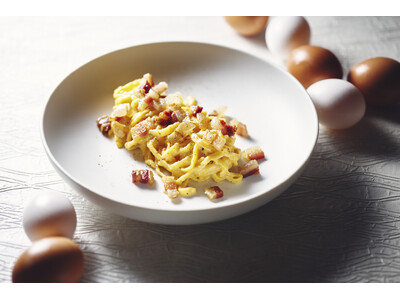 使用する卵は厳選されたオーガニック卵で、卵黄の濃厚な味わいがパスタにもソースにも活かされています。また、通常は捨ててしまう卵白をメレンゲ状に仕立てて生クリームの代わりに使用することで食感がとても滑らかになり、パスタとソースがより一層絡み合う、サステナブルな逸品へと仕上がります。