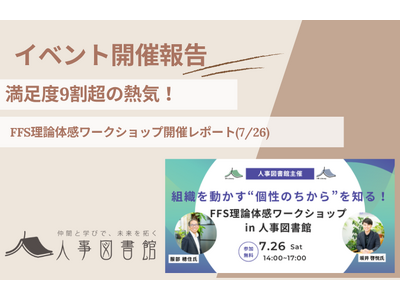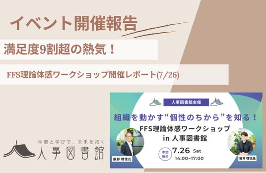 株式会社Trustyyle(本社:東京都中央区・代表取締役:吉田洋介)は、2025年7月26日に「組織を動かす“個性のちから”を知る!FFS理論体感ワークショップ in 人事図書館」を運営するコミュニティ「人事図書館」にて開催しました。relate株式会社の坂井啓悦氏、服部穂住氏らによるFFS理論に関する講演や参加者自身の診断結果を用いた体感型ワークショップが行われ、盛況のうちに終了しました。本記事では、イベント当日の様子や成果についてご報告します。