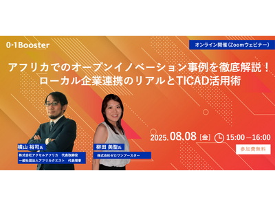 株式会社アクセルアフリカ(本社:香川県高松市、代表取締役:横山裕司)は、株式会社ゼロワンブースター(以下 01Booster)主催のウェビナー「アフリカでのオープンイノベーション事例を徹底解説!ローカル企業連携のリアルと TICAD活用術」に登壇します。