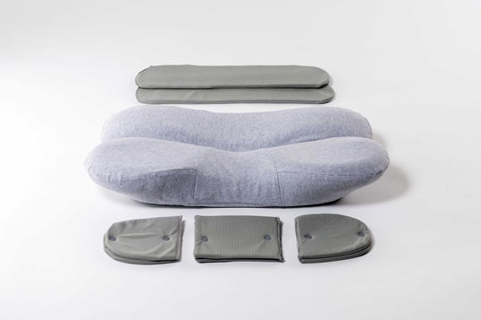 利用者の体格や好みに応じて、首・肩・頭の高さを細かく調整できるよう、ヘッドピローに2枚、サポートピローは3分割各2枚の調整パッドが内蔵されています。「仰向け時と横向き時でフィット感が違う」と感じる方でも、この調整パッドを使えば81通りの調整が可能。まるでオーダーメイドのように、自分にフィットする調整ができます。