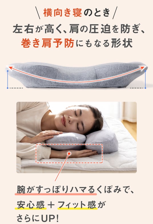 “横向き寝がしづらい”の声から生まれた、新しい形状
