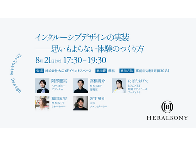 本サービスの提供開始にあわせ、体験型イベントを以下の通り開催いたします。クリエイティブユニット“MAGNET”をゲストに迎え、商品やサービス設計に活かせるインクルーシブな視点を、登壇・体験・対話を通じて学べるイベントを2025年8月21日(木)に開催いたします。