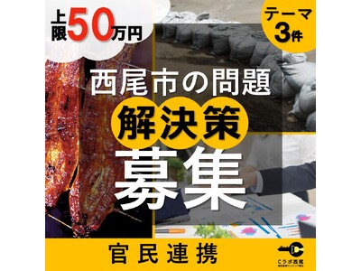 西尾市が抱える問題「災害への備え」,「地元企業と学生のマッチング」,「三河一色産うなぎ」について、民間事業者等から解決策を募集し、実証実験を行います。