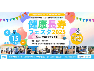 世界的な聴覚ケアグループ、デマントの補聴器旗艦ブランドで、120年以上の歴史をもつオーティコン補聴器(本社:神奈川県川崎市、プレジデント:齋藤 徹、以下 オーティコン)は、9月15日に開催される「Anker フロンタウン生田 健康長寿フェスタ2025 supported by ひまわり調剤薬局株式会社」に今年も協賛し、当社ブースにて「聞こえに関するミニセミナー」や「簡単聞こえチェック」を無料で実施予定です。