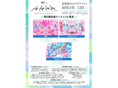 「北陸を"音楽"で元気に!」北陸発信のスターを育成するプロジェクト『ほくりくアイドル部』を運営するアンサー・エンタテインメント(アンサー株式会社、代表取締役社長 有村勇志)は、2025年10月11日(土)・12日(日)の2日間にわたり、メイン会場を「金沢歌劇座」に変え、さらにライブハウス6会場を含む全7会場にて昨年より規模を拡大して開催する『UP-T presents かがやきフェス2025』の第6弾出演アーティストとして追加3組をお知らせいたします。