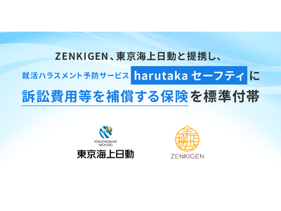 AIテックカンパニー 株式会社ZENKIGEN(本社:東京都港区、代表取締役CEO:野澤比日樹、以下ZENKIGEN)は、AIによる就活ハラスメント予防サービス『harutaka セーフティ』において、東京海上日動火災保険株式会社(本社:東京都千代田区、取締役社長:城田 宏明、以下東京海上日動)と提携し、2025年6月末より全ての利用企業に訴訟費用等を補償する保険を標準付帯したことをお知らせいたします。これに伴う利用企業の追加費用負担はありません。