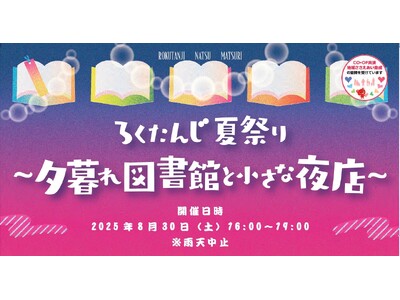 2025年8月30日(土)16:00~19:00、西宮市六湛寺南公園にて「ろくたんじ夏祭り~夕暮れ図書館と小さな夜店~」を開催します。